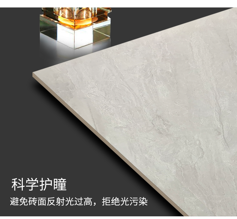 柔光瓷磚是磚面反射介于強光與弱光之間的一類瓷磚,其結合亮光類瓷磚的高調明艷裝飾和啞光類瓷磚的低調內斂搭配效果,通過動態(tài)柔光蠟拋技術,降低產品反光率,從而達到人體舒適的視覺感受以及無光污染的空間裝飾效果。優(yōu)點:1.視覺舒適,無光污染 2.堅固耐磨,不易刮花.