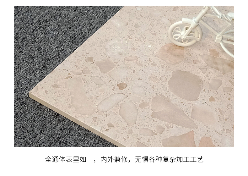 大尺寸水磨石防滑耐磨,應用于公共場合更具優勢,自然簡約的紋理,百搭適用性廣,水磨石里面大顆粒,不規則的石子花紋,很有不確定的隨機美感。始于顏值/陷于工藝/忠于品質!