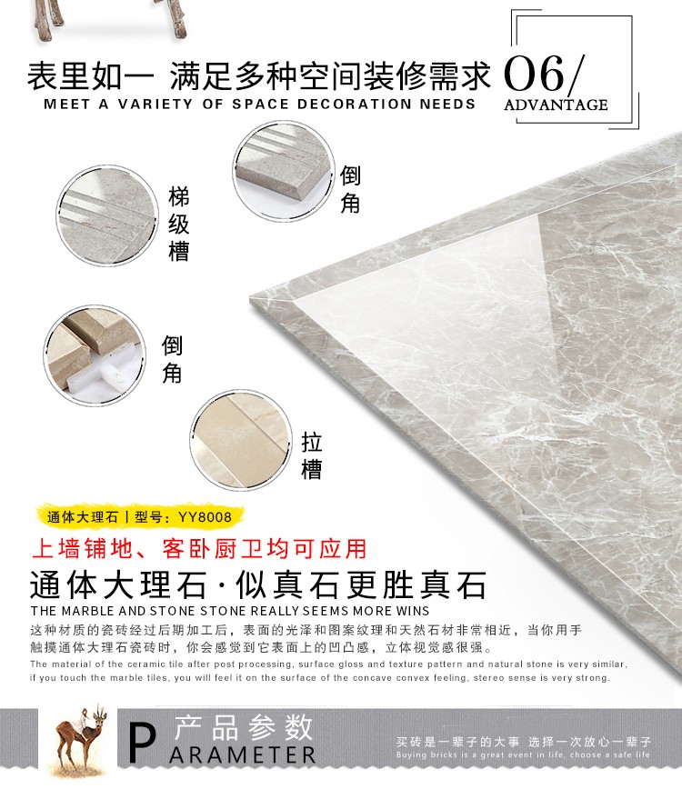 通體大理石瓷磚,即是大理石瓷磚的一種,亦是一種拋釉磚坯經(jīng)過拋光工序之后形成的瓷磚,只不過通體大理石瓷磚更加注重對瓷磚磚坯的塑造,其原本原理也是在大理石瓷磚基礎(chǔ)上,加類似于瓷磚表面紋理的磚坯組合而成的瓷磚產(chǎn)品。另外,現(xiàn)階段各種傳統(tǒng)單純釉面的大理石瓷磚產(chǎn)品已經(jīng)開始泛濫,而通體大理石瓷磚的出現(xiàn)無疑又是給已經(jīng)乏力的大理石瓷磚市場注入新的活力.應(yīng)用廣,市場大.