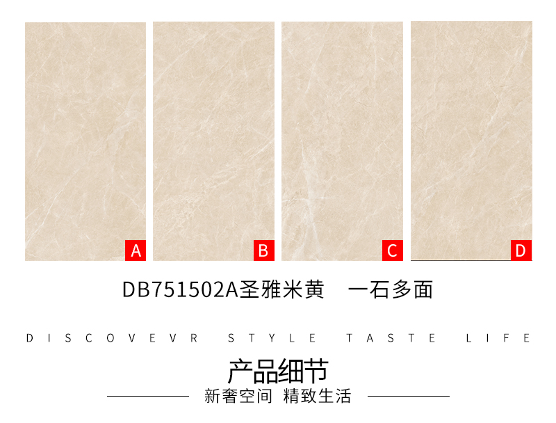 大規格瓷磚(DB751502A)-工程瓷磚 金曼古大規格瓷磚引進世界最先進的超大型壓機自動壓制而成,具有超大規格,超高硬度,超高致密度,超長時間煅燒,超低吸水率,超高光澤度。其磚面紋理流暢自然,效果逼真,適用于大型工程外墻干掛和酒店、商場、各辦公樓大堂等地面裝修