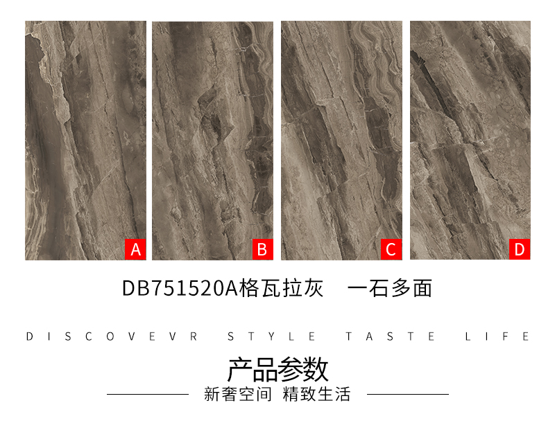 大規(guī)格瓷磚(DB751520A)-工程瓷磚 金曼古大規(guī)格瓷磚引進世界最先進的超大型壓機自動壓制而成,具有超大規(guī)格,超高硬度,超高致密度,超長時間煅燒,超低吸水率,超高光澤度。其磚面紋理流暢自然,效果逼真,適用于大型工程外墻干掛和酒店、商場、各辦公樓大堂等地面裝修